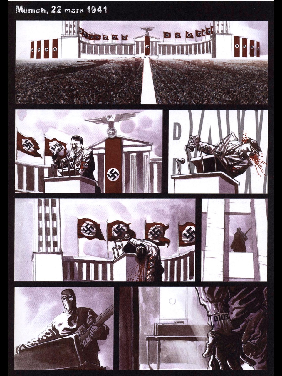Enfin, il y a l’histoire. Les nazis sont les gentils, enfin pas tous, mais en tout cas les Russes sont les méchants. Les auteurs ont choisi un terrain glissant en décidant de créer un monde dans lequel le 3e Reich a réussi son plan, gagné la guerre et poursuivi ses objectifs malgré l’assassinat du Führer. Choquant? Ben ouais, un peu quand même. Mais bon, pourquoi pas? Surtout qu’on comprend assez vite que ce parti pris scénaristique ne provient pas d’une quelconque nostalgie ou fan-attitude de Brugeas et Toulhoat. Alors on respire.