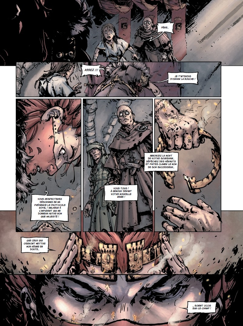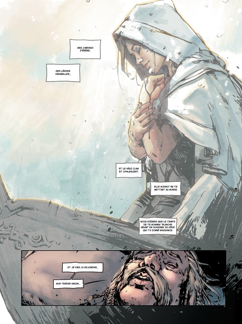 La jeune princesse abandonnée au plus profond de la forêt, la méchante reine un peu sorcière, le miroir magique, les nains, la pomme empoisonnée, le prince charmant. Tout est là… et pourtant tout est différent dans cette relecture de Blanche-Neige façon heroic fantasy.