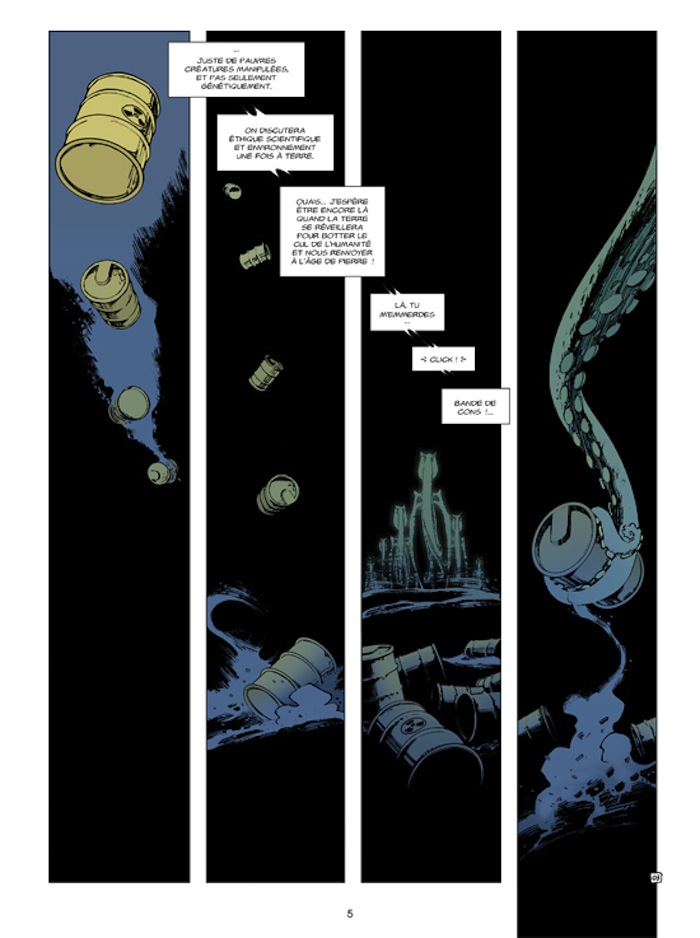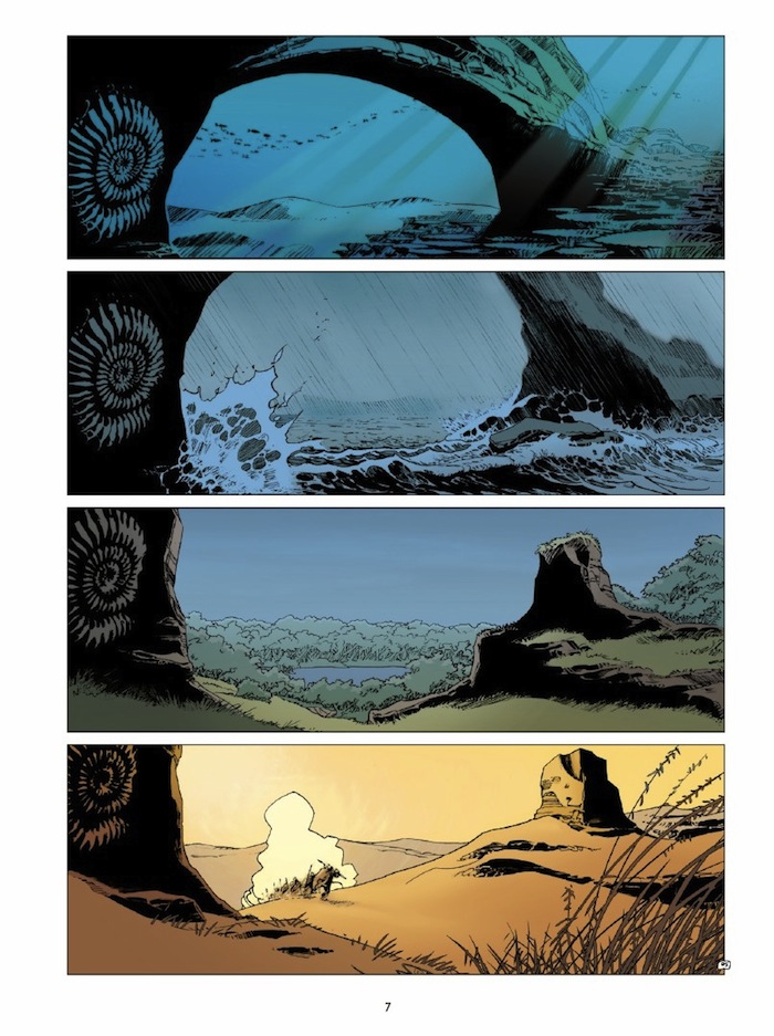 Surtout que côté dessin, on n’est pas déçu! (ou alors en bien) C’est beau, c’est bien découpé, c’est dynamique et intelligent. Par exemple, il suffit d’une planche sans texte, juste quatre cases pour nous faire comprendre ce qui s’est passé entre notre époque et le début de l’histoire.