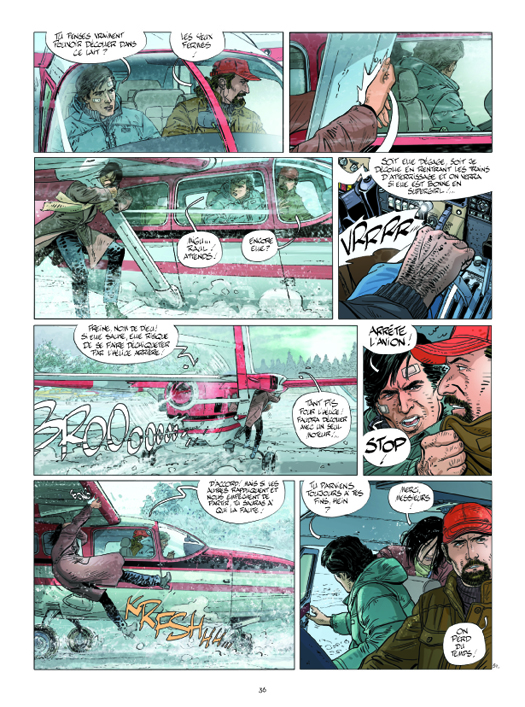Du coup, entre les surprises récentes et le changement aux crayons, on était plutôt curieux de découvrir ce nouvel Alpha. Côté dessin c’est pas mal. Un peu moins « propre », ce qui donne à l’album un aspect plus vivant, nerveux et on a envie de dire « contemporain ». Cela ajoute au réalisme de l’histoire, qui pour le coup est bien tordue.